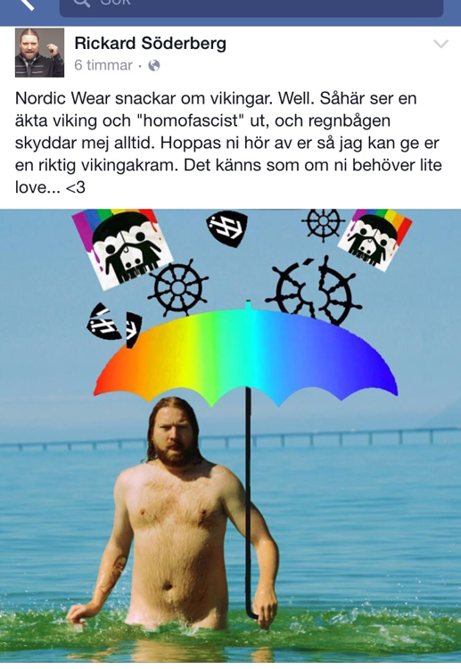 Rickard Söderberg bjudet på denna öppet på Facebook som jag tycker är grym! En man som vet hur man svarar upp mot homofober.