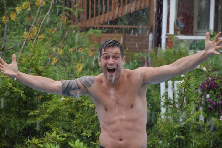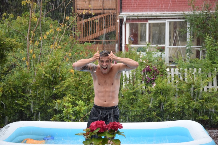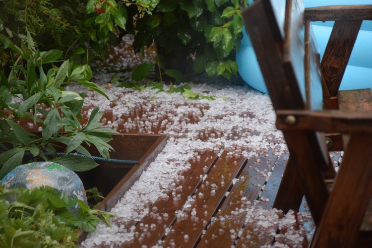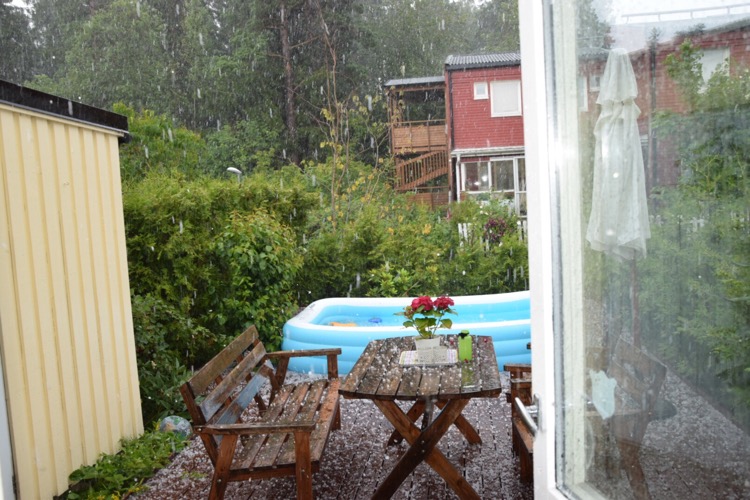 Detta va det värsta haglet jag upplevt tror jag och det gjorde ont på riktigt då bollarna small ner i skallen som hårda slag. Varför åka på charter när det äntligen går att bada i poolen hemma:)