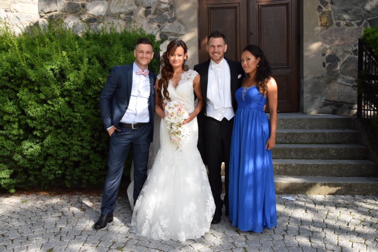Självklart bleb vi sist in av alla, precis innan Bruden skulle gå in i kyrkan men vi missade inget iaf! Ett sånt vackert brudpar Markus och Emma är och vilken resa som tagit dom till att det idag är Man och Fru. Barnen va så söta så man smälte och allt kändes så fint att jag njöt av atmosfären till deras lyckagaste dag som vi fick ta del av.