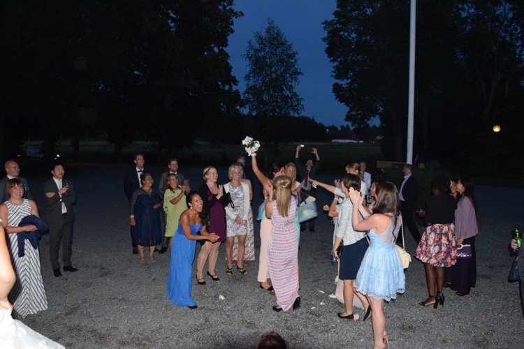 Trevliga tal med skratt och känsla där tårar inte kunde stoppas. Normalt brukar jag tycka det är skrämmande att hamna i miljöer med mycket folk så här men att sitta vid ett bord helt ensam och dela Brudparets glädje kändes fantastisk och trevligt hade vi allihopa. Festen började ganske sent och det dansades och spexades för fullt. Super trevligt att Vännen Emily kommit upp hela vägen från sandlådan Dubai till detta och med henne i sällskap kan man inte ha tråkigt. Och Kakan Empa du kommer också hitta din man på Nattbussen från Uppsala till Enköping 🙂