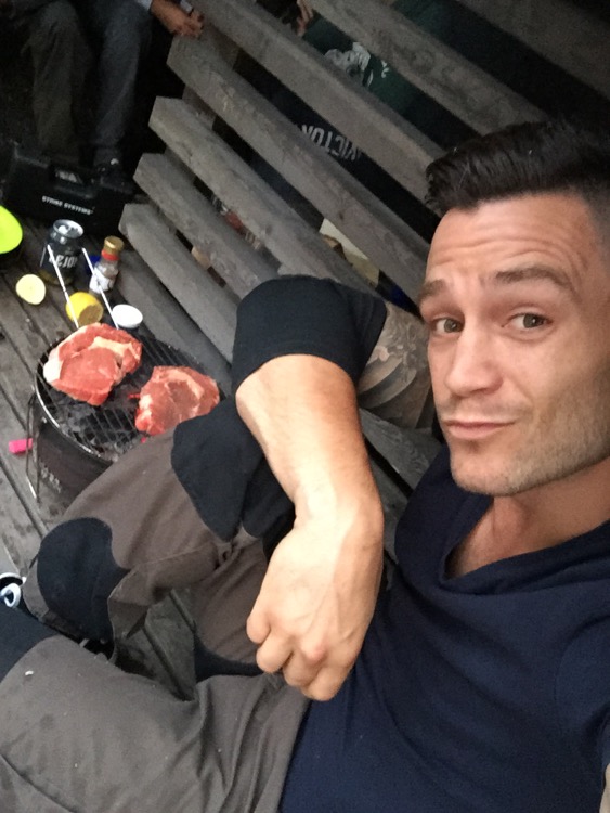 Igår va det fiske då regn och åska small till och vi hade tur som hade vindskydd och jag roffade åt mig platsen vid grillen som värmde mig gott samt mitt kaffe.