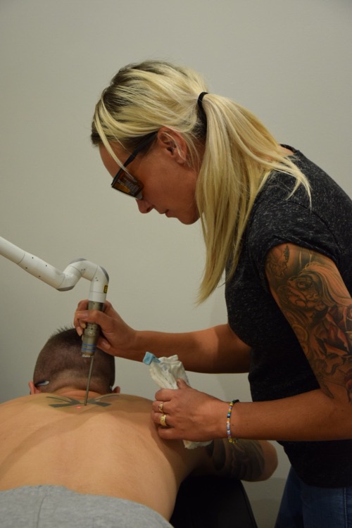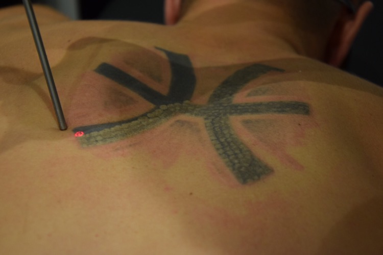 Hur känns det att göra laser? Första behandlingen gick kanon men huden va varm efter behandlingen i någon dag. Det viktiga är att man tar hand om huden och man smörjer den varje dag, jag har inte fått en enda blåsa eller skorpa och då har jag nu gjort två behandlingar. Behandling nr 2 va kraftigare i styrkan och kändes men gick snabbare så dom minuter med lite sveda gjorde mig inget då jag psykiskt är inställd att tatueringen ska bort. Har efter den andra behandlingen inte blivit varm i huden trots att lasern då va starkare. Resultatet har redan efter omgång två gett resultat då tatueringen Börjar blekna bort sakta men säkert. Ca 9 gånger kommer jag kasta min rygg innan färgen är borta, men det är värt varenda gång