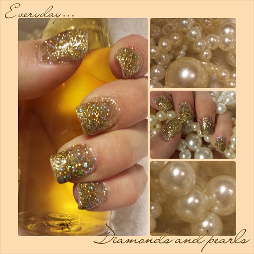 Jag har köpt på mig tonvis med lacker, glitter, stickers, pärlor, gel, Uv-lampor (ja till&med det har jag flera), verktyg och filar för kung och fosterland… och så tvingar jag alla vänner att sitta stilla i timme ut och timme in medan jag övar 🙂