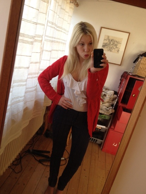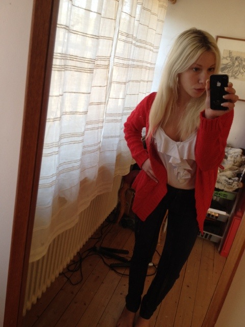 Dagens outfit :) 14 mars, 2012 av alma Eftersom jag har fått frågor i bloggen om att jag borde visa mer ”dagens outfit” så gör jag självklart det! Alltid kul att ni läsare kommer med förslag 😀 Kofta- Gina Linne- Gina Byxor- H&M