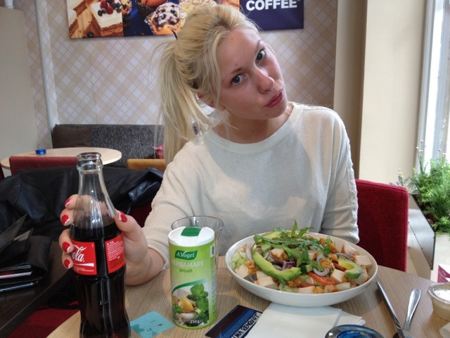 Äter lunch med tjejerna! :) 19 april, 2012 av alma Har varit i skolan hela dagen, det har gått super bra! Har lunch rast nu så jag och Angelica, Ada och Jade sitter på Waynes och lunchar! Riktigt mysigt! Äter en sallad med kyckling och extra mycket avokado muumms Är heelt osminkad , sweet!