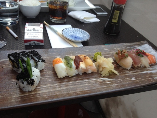Sitter med lite vänner och äter sushi sen ska vi kolla maaatch 🙂