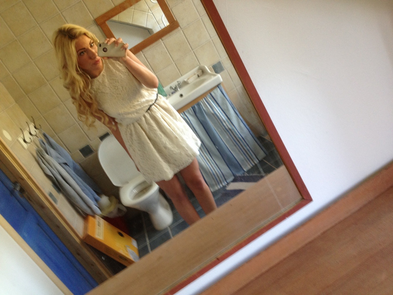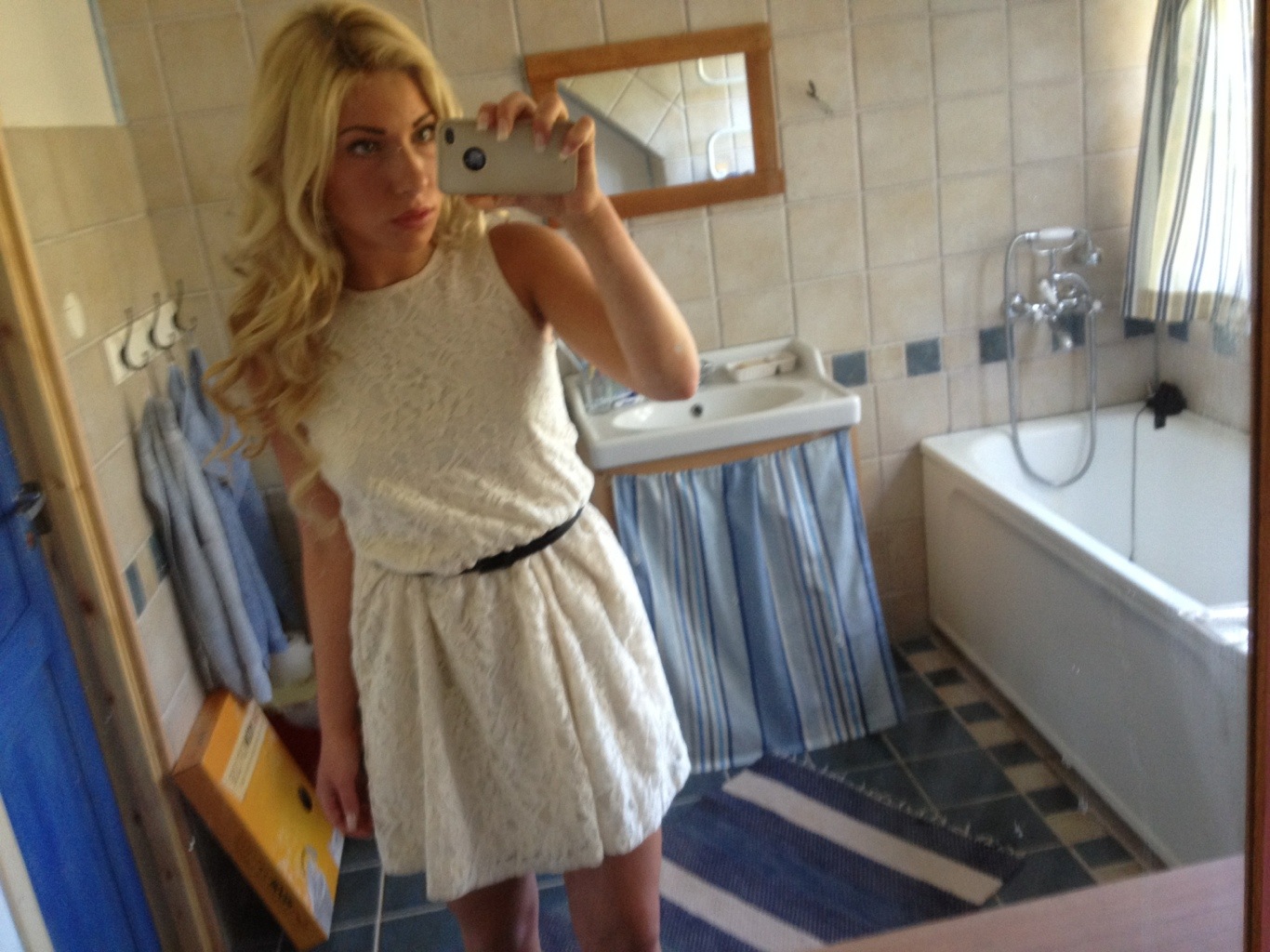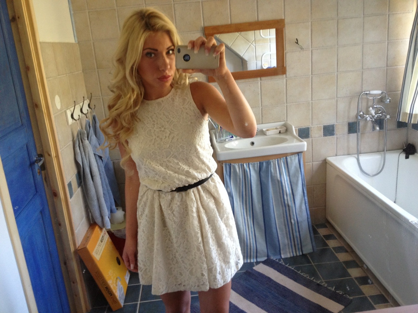 Funderar på att ha på mig denna söta klänning, köppte den i London! Men är fortfarande lite tveksam över klädval… Hm..