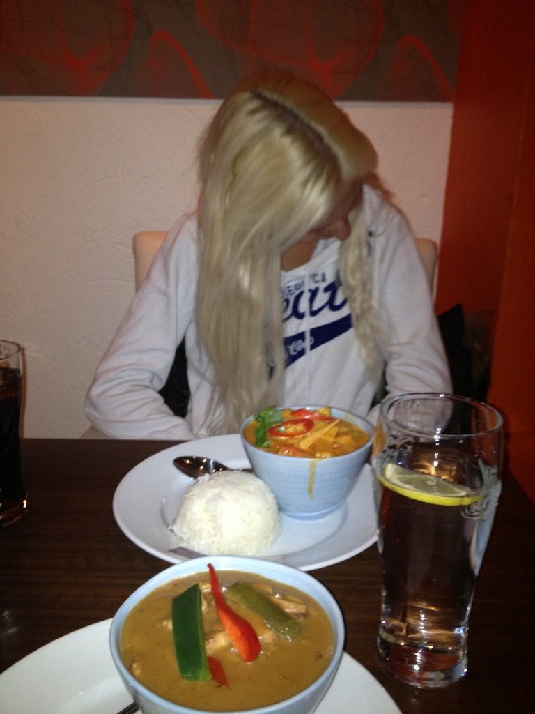 Sedan gick jag och Jonnah och åt thaimat på Pong, vi satt där i typ 3h och bara snackade! Sjukt mysigt 😀 skulle ha följt med och solat, men mina fötter var helt dygn sura pga att jag gått i slask hela dagen, så var mest sugen på att åka hem och få torra fötter ! Haha