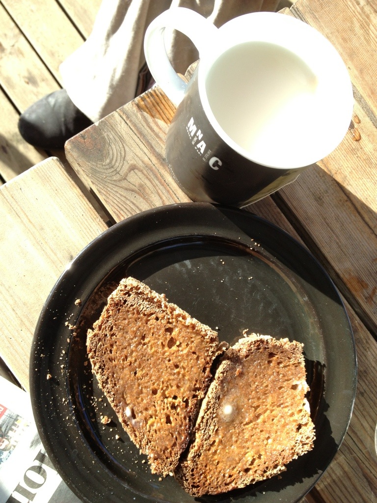 Te och grova mackor ute på altanen 🙂