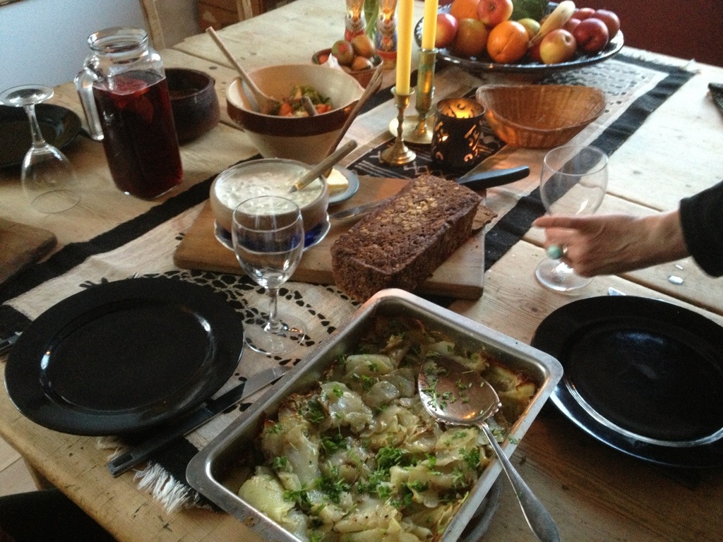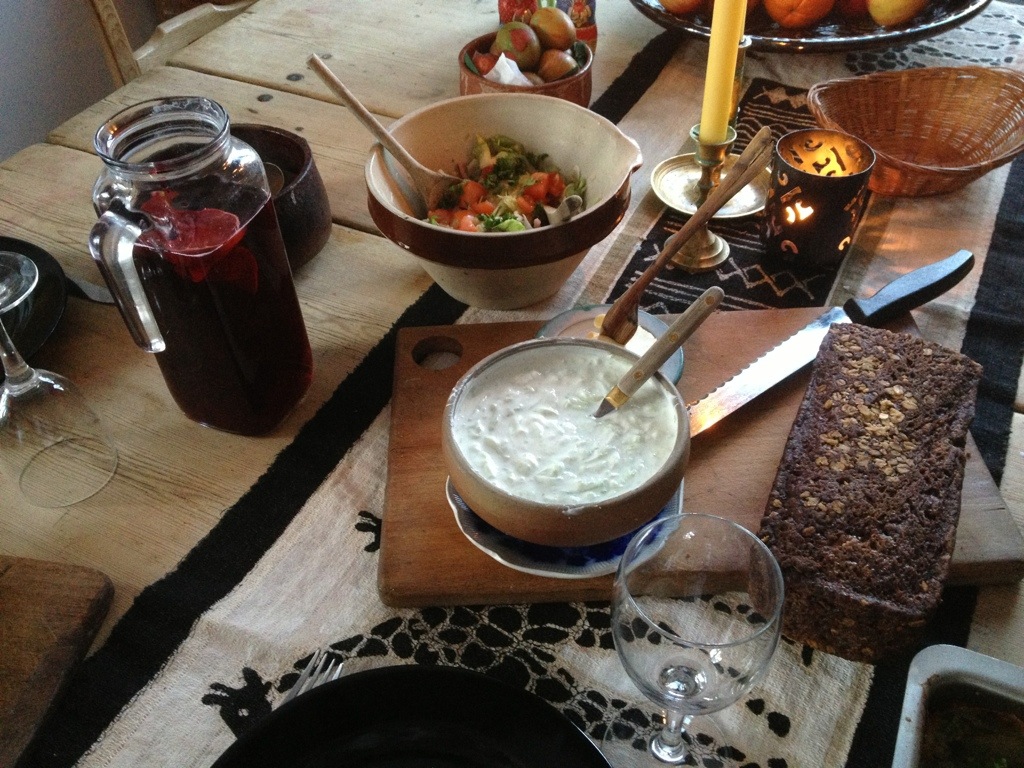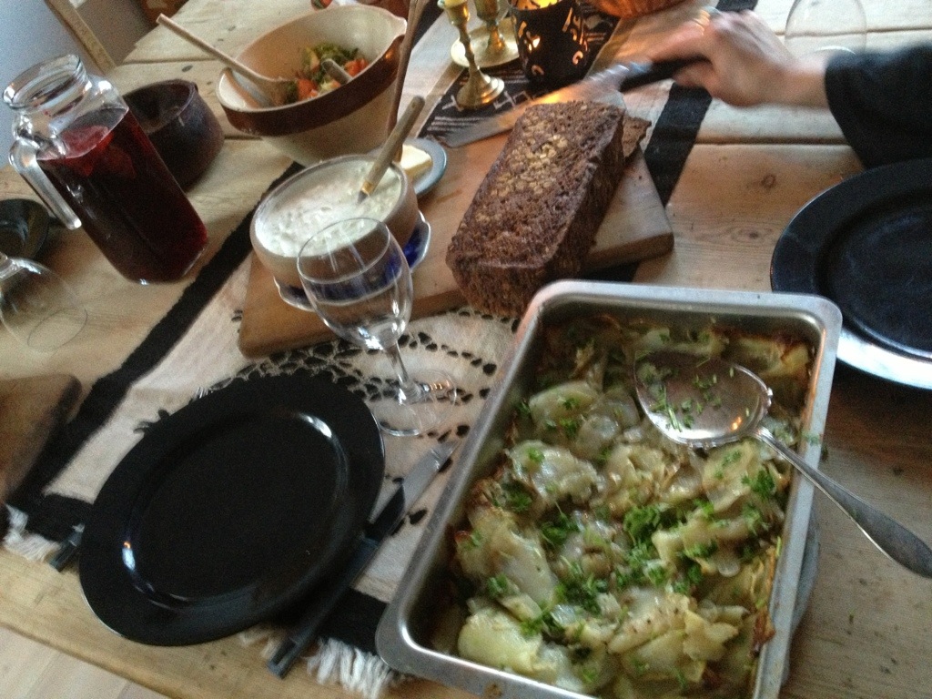 Innan jag och Vanessa åkte in till stan för att möta upp Gabriel, så hade vi en påskmiddag hemma! Mamma lagade lammstek i ugnen, med potatis ( också i ugnen ) och sedan sallad och 2 olika såser! Såklart fanns påskäggen också på bordet, men det orkade ingen äta.. Haha!
