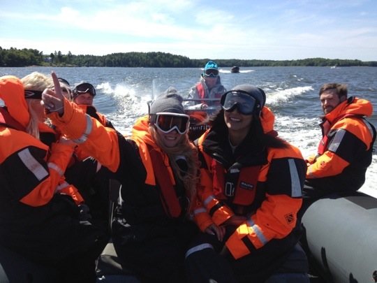 Man var tvungen att ha skyddsdräkt på båten eftersom det gick så snabbt