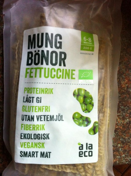 , finns t.ex. på Life Gröna Boden vid Vasaplatsen i Gbg. Innehåller ekologiska mungbönor, inget annat.