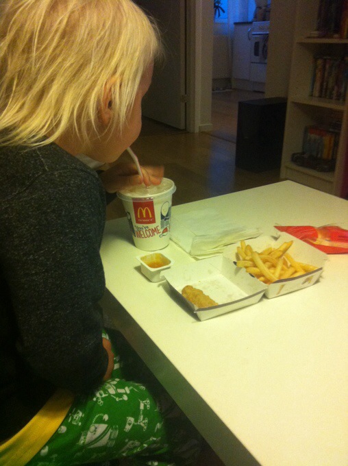 Efter att jag hämtat Casper på Leos så åkte vi till fonlen och köpte nuggets så han kunde äta hemma.