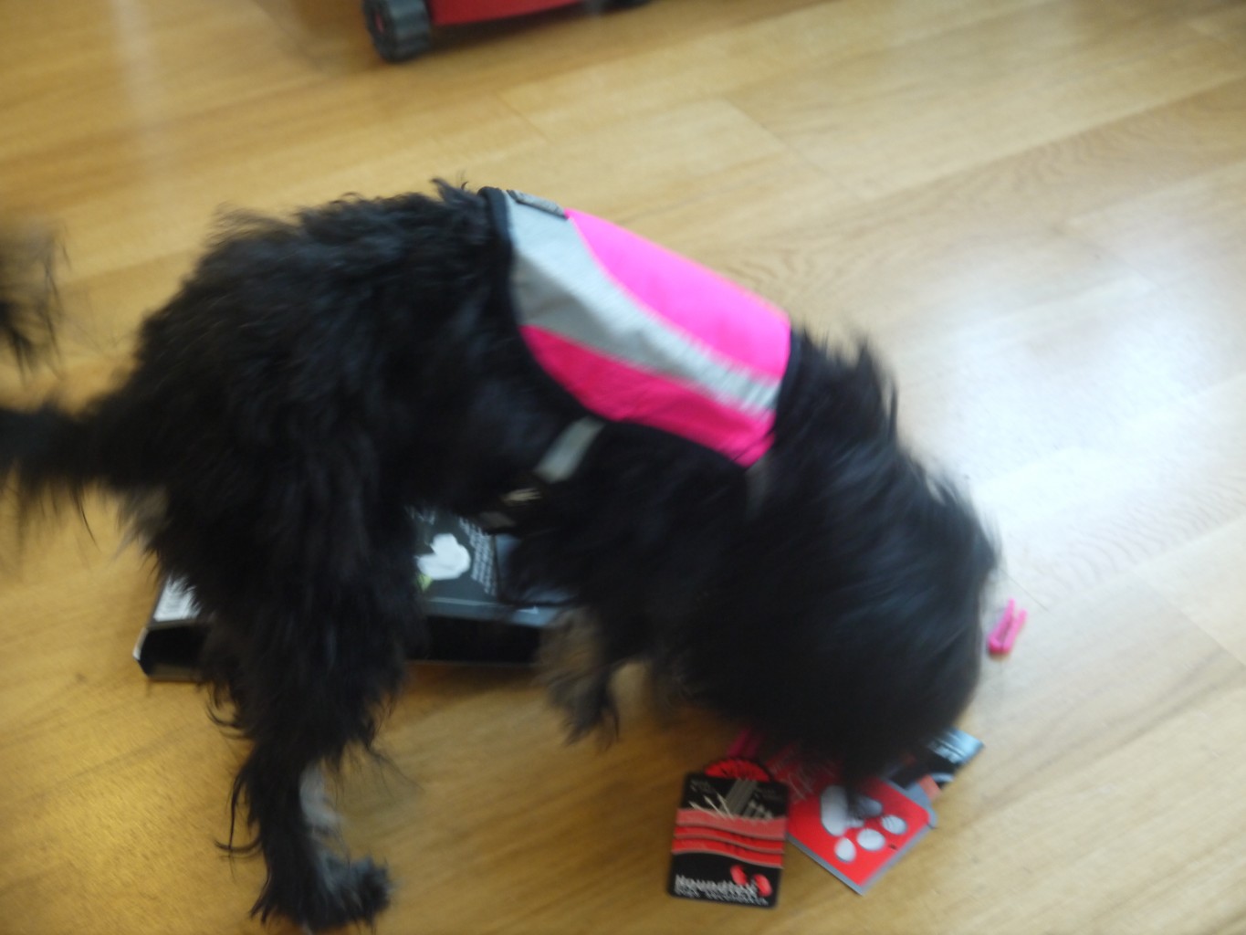 Att ha en liten och svart hund i vintermörkret är inte det lättaste, hon syns inte för bilister och cyklister så hon blir en fara, så med denna reflexväst ska hon väl synas lite extra.