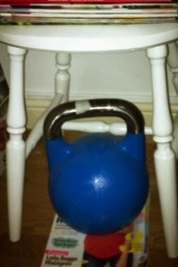 Där står mitt Kettelbells klot under mitt sängbord och väntar på att jag skall få svinga det.