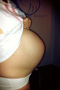 2. Vilken underbart härlig form du har på magen. Håller tummarna på att det ska gå bra, ut kommer han säkerligen.
