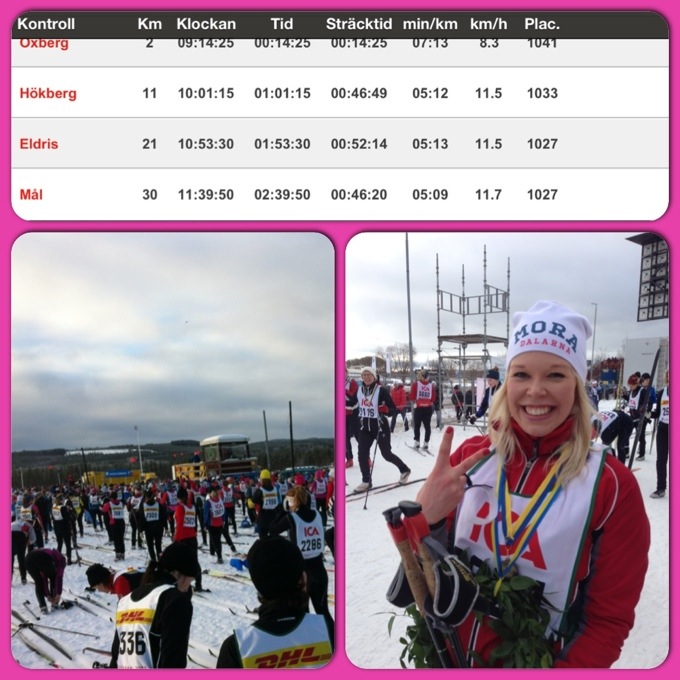 Nu är del ett avklarad. Jag åkte TjejVasan igår på tiden 2,39. Jag är jätte nöjd med den tiden efter de förutsättningar som jag haft. Men nu är det iaf bevisat att med en massa vilja, en del jävlaranamma och lite galenskap så går allt. Hehe!