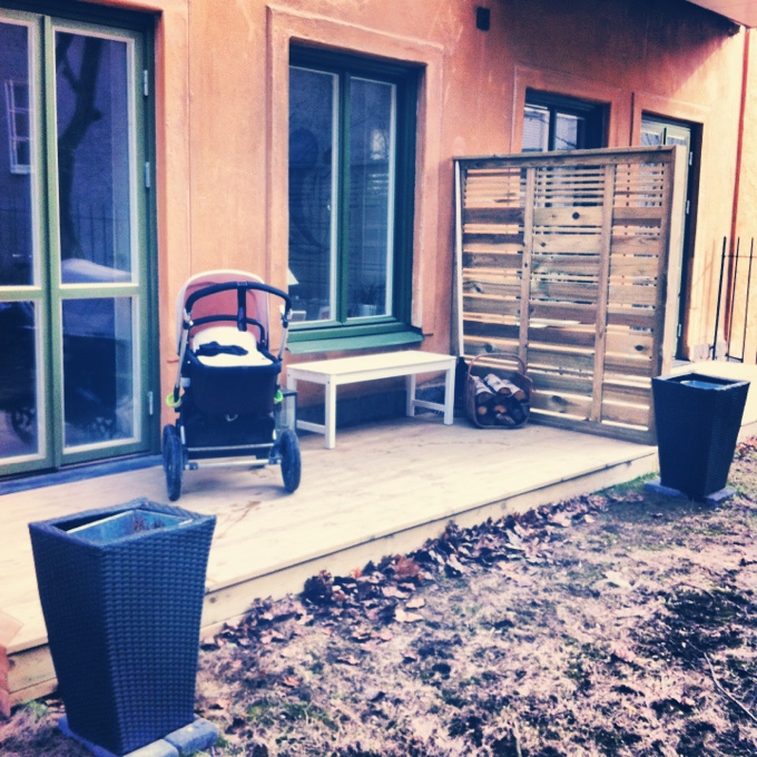 Nu har jag och LillSkrutten städat upp på uteplatsen. Känns jätte bra att få städa bort lite av vintern. Längtar tills våren börjar komma lite mer så vi kan plantera blommor och hämta hit utemöblerna. Sitta ute och äta frukost i sommar. LillSkrutten skall få en lite pool också.
