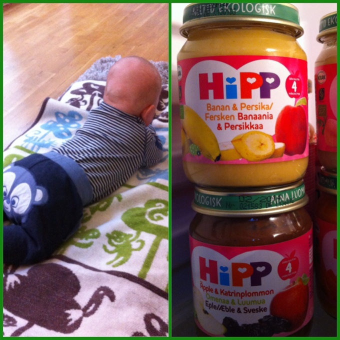 I morgon är det dags för första smakprovet på mat. En halv tesked till frukosten skall han få av sin pappa. Kommer att bli jätte roligt att få se hur han reagerar. Än så länge har han bara fått miniform och D-vitaminerna på sked och miniform bara kastar han i sig. Men samtidigt är jag lite nervös. Vi skall på Mammagrupp på tisdag och då kommer en dietist. Känns bra att få veta lite mer. Vill verkligen inte ge honom ”fel” saker. Skulle ha fått en matbok av min BVCtant men hon är så snurrig så det har jag ju inte fått… Skall se om jag kan komma över en på tisdag.