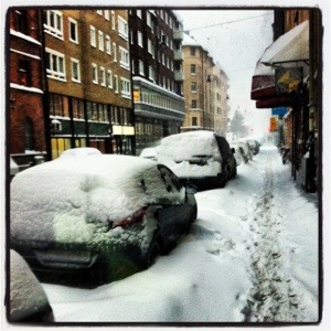Så här ser det ut utomhus, så det blir att gå fram och tillbaka till affären bara. Det är lite tungt att pulsa i snö med foglossning och gravid i vecka 39..