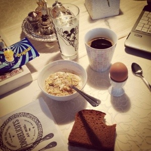 Det var riktigt skönt att promenera så här på morgonen och innan frukost, och jag märkte hur det sakta började ljusna.. Väl hemma igen 35 min senare så var jag riktigt hungrig så jag kokade ett ägg och åt en riktigt smarrig frukost 😉