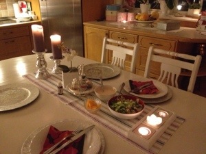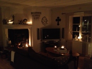Nu har jag tänt en massa ljus och förbereder middag, baconlindad kycklingfilé med stekt ris blir det i dag och till det en fetaostsallad och kall sås.. Mums