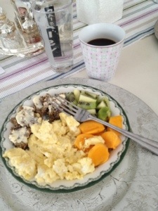 Käkade frukost som bl.a. Innehöll scrambled egg.. Smarrigt v