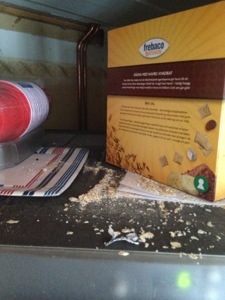 Fick senare se att det låg fullt med havregryn på golvet av någo konstig anledning…. Joodådå mycket riktigt.. Råttor hade kalasat så det till och med hade skvätt i väg på golvet…