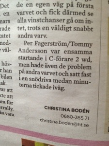Läste samtidigt dagens HT och såg att Per hade fått en liten notis på sportsidan..
