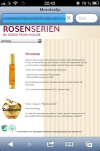 Jag kan varmt rekommendera Rosenseiens hudvårdsprodukter och framförallt Morotsoljan … Underbar konsistens och huden får en fräsch lyster, luktar ljuvligt, du blir mjuk och len och dessutom är den svanenmärkt… Har du inte testat den??? Gör det!