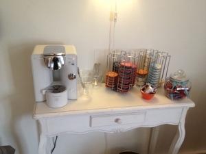 Och så klart blev jag serverad en fantastiskt god kopp kaffe från hennes nya kaffemaskin…och i nya koppar.. Service på hög nivå..
