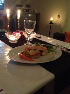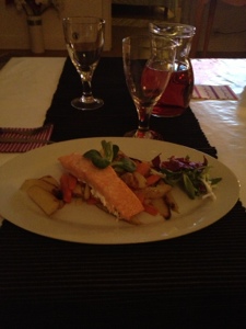 Vi fikade och hade jättetrevligt och det bästa av allt var nog den fantastiska middagen han bjöd på … Gud i himmelen vad gott det var.. Jag älskar verkligen lax.. Och den här får verkligen topp betyg av mej.. Och kolla uppläggningen!!! Wow!