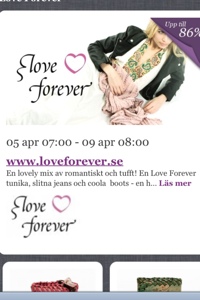 Sen vill jag även tipsa om att du kan bla köpa Love Forever plagg från föregående kollektioner till mycket bra pris på www.campadre.se/ Blir du medlem så får du dagligen mail med olika erbjudanden och otroligt billiga kläder, resor, smycken mm…