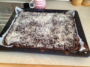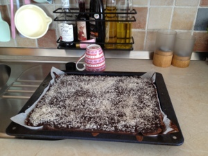 Receptet har ni fått förut och det är Lejlas recept från hennes bok ” a Piece of cake ”. Mumsigt värre och i dag valde jag att blanda hälften 80%: ig mörk choklad med 70 %: ig mörk choklad både i själva kakan och som glasyr…