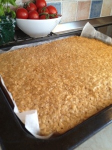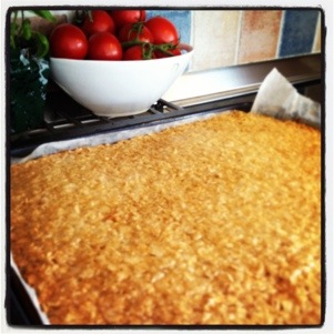 Fick lite tid över i dag så jag bakade en Havretosca nu innan middagen.. Jag gillar verkligen långpannebak… Då behöver jag inte kladda och klafsa med händerna och framförallt så blir det många kakor..