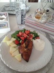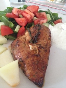 Dagens middag blev en saftig örtkyckling i ugn, blandad sallad, lite honungsmelon och kall vitlökssås..