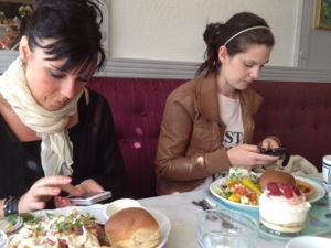 Snacka om upptagna med sina mobiler.. Knäpper kort till Instagram, facebook och knäpper kort till Blogg.. Allt måste förevigas, men trevligt hade vi i alla fall trors denna syn.. Haha..