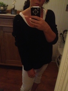 Detta är en svart stickad tröja som glittrar till så fint..
