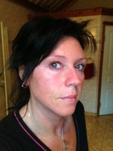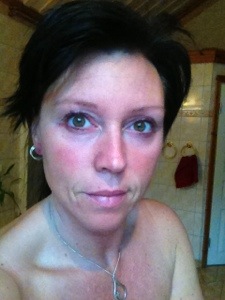 Tvättade ansiktet noggrant sprayade med RosenSeriens Rosenvatten, väntade liten stund och sedan sprayade jag ansiktet med Brun utan sol sprayen och blåste torrt med hårfönen..