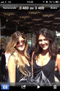 Vilken dag!!! Solen skiner, folk är glada och trevliga.. Jag har ätit en jättegod lunch osv, osv.. På väg till Östermalms torg för att avnjuta en stunds vila i solen så sprang jag på Maria, Sara och Hanna Montazami.. Oh My, oh My det kan inte vara lätt att vara i deras kläder en dag dom denna.. Alla stannade dom och ville knäppa kort.. Inkl. jag, haha!