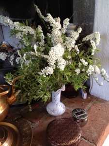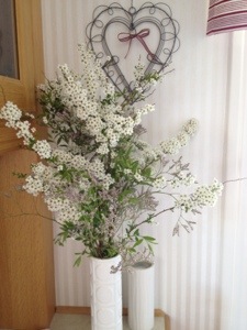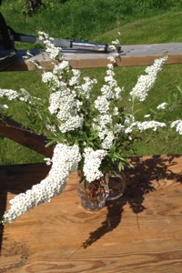Det är underbart väder, jag är ledig och allt känns toppen idag.. Jag har plockat lite luktagott blommor som jag har satt i vaser både inne och ute, mest som kontrast till kobajslukten från åkrarna och dels för att dom är vacker att se på.. Jag älskar vita blommor.. Så snyggt!