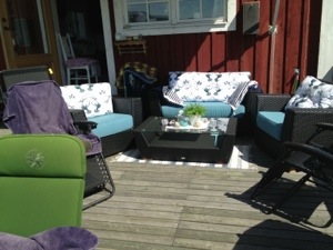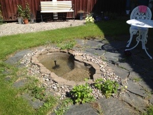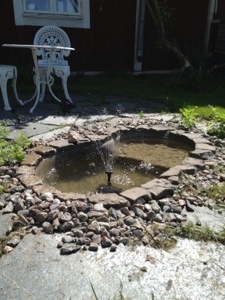 Jag ligger/sitter faktiskt inte bara och latar mej för jag har rengjort vår lilla damm också och fyllt den med vatten.. Bara blommorna som saknas nu..