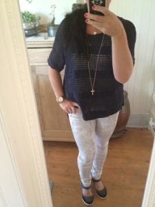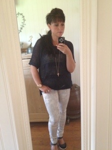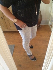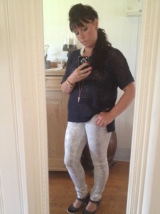 Dagens Outfit fick bli: favvobyxan från Love Forever brooklyn pants gold snake..finns i Webshoppen på http://www.loveforever.se/byxor-och-jumpsuits/brooklyn-pants-gold-snake.html den blåglittriga tröjan kommer från Kappahl och ett vanligt linne under.. Skor är Skills.