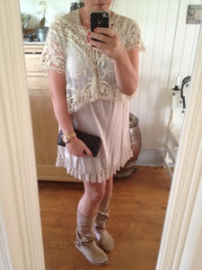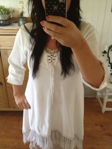 Vit velourklänning från Love Forever, valde en lite längre underklänning under, för mina chefer vill inte att vi har för korta klänningar eller kjolar på oss när vi jobbar i butiken och jag respekterar det. Hade det varit en ledig dag så hade jag utan tvekan valt utan underklänning med LdiR stövlar..