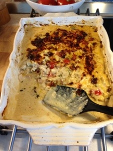 Strödde till sist över lite mer riven västerbottenost och ställde in i ugn på 225 grader..