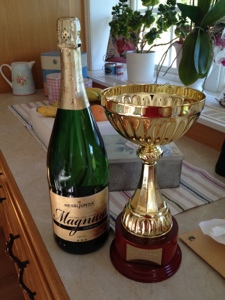 Gissa om jag fick hem en lycklig sambo igår efter att han vunnit i Tierp på Tierp Arena där dragracingtävlingen hölls i helgen.. En riktigt stor tävling var det, tror att det rent ut av var en EM tävling.. Detta kom han hem med iallafall
