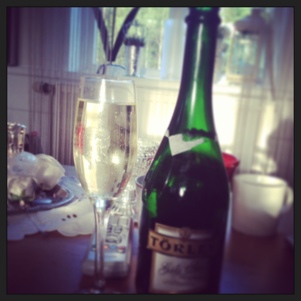 Vi delade broderligt på det goda och billiga mousserande vinet.. Och nu är programmet slut och flaskan slut.. Alla nöjda och glada.. Det behöver definitivt inte vara dyrt för att vara gott..