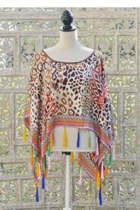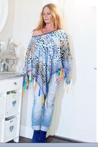 Underbaraste sidenponchon Leo i färgen blått och orange