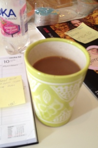 Kaffet klart och dags att starta upp datorn.