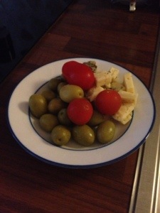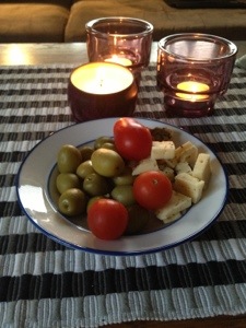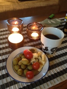 Lite Voluspa ljus, lite oliver, lite god örtkryddad ost, lite tomat och ja visst fattas det nåt???